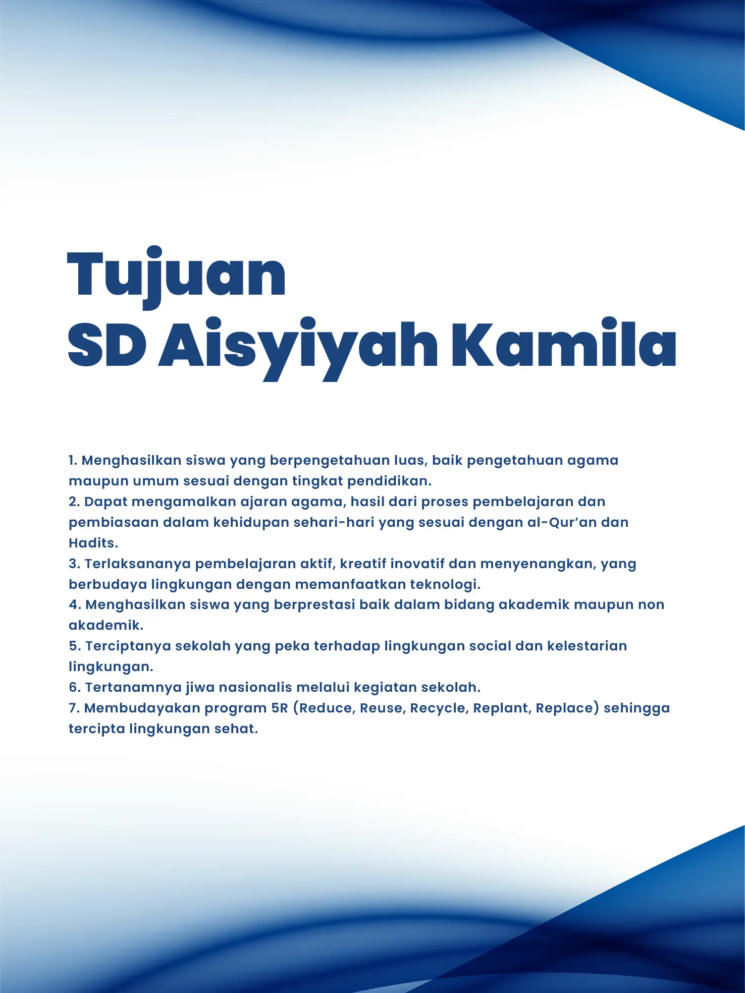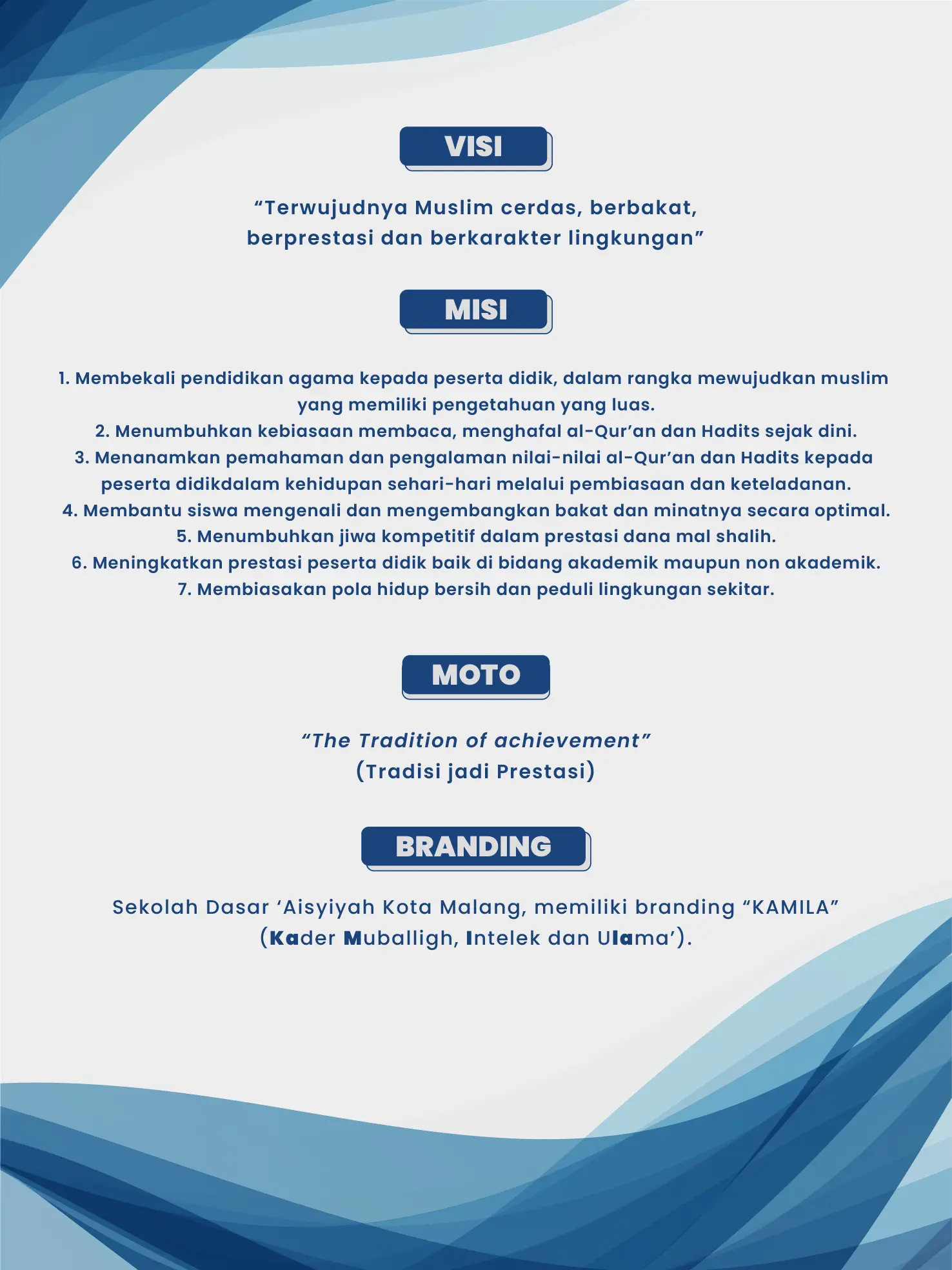 Informasi SD Aisyiyah Kamila Kota Malang Informasi SD Aisyiyah Kamila Kota Malang Berita Berita Awal Tahun, SD Aisyiyah Kamila Torehkan Prestasi Gemilang by sdaisyiyahmalang Januari 6, 2026 SD Aisyiyah Kamila Gelar Munaqosyah ke-9, Bentuk Generasi Qur’ani Pemimpin Masa Depan • Januari 28, 2026 SD Aisyiyah Kamila, Raih Perunggu Musabaqah Fahmil Quran Nasional • Agustus 27, 2024 Tingkatkan Mutu Pendidikan, SD Aisyiyah Kamila Malang Jalin Kerjasama dengan Sekolah Luar Negeri • Agustus 27, 2024 FORTASI 2025 – DAY 1: SD Aisyiyah Kamila Menyambut Siswa Baru dengan Kegiatan Penuh Makna • Juli 23, 2025 Pengumuman Lokasi Galeri SD Aisyiyah Kamila